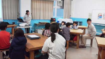 印刷会社の方からお話しを聞いています。身の回りに印刷されたものがたくさんあってびっくりです。