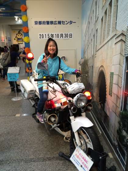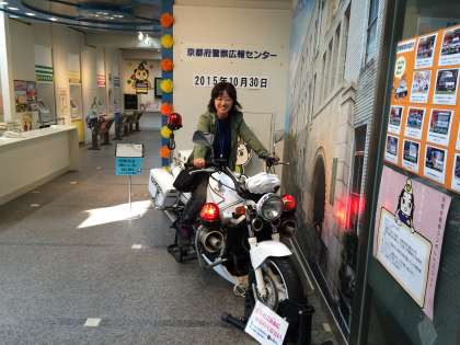 白バイに体験乗車しています。