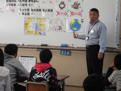6年生は3時間目にスクールールサポーターの小野さんに来ていただき「非行防止教室」を行いました。ちょっとした心の隙が大きな事件につながってしまうことや,携帯電話やインターネットの正しい使い方について教えていただきました。たくさんの子達が真剣に耳を傾けていました。正しい知識と強い心を持って,安全に楽しく生活できる力をつけて欲しいです。