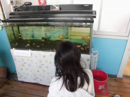 国語の時間に「しらせたいな見せたいな」を学習しています。今日は,校内の動物などを調べていました。