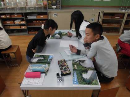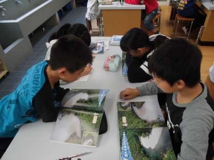理科の時間に,「流れる水のはたらき」を学習しています。今日は,晴れの日,雨の日の川の流れ方の違いを考えていました。