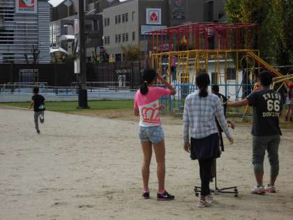 「中間休みだ!」と元気よく出てきて遊んでいます。