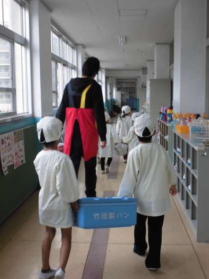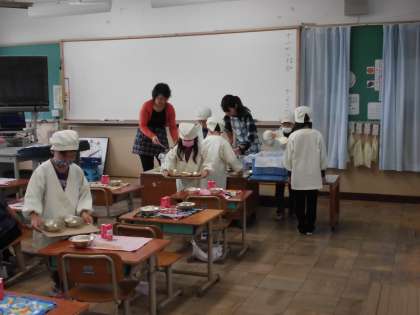 1年生も、ずいぶん手際よく給食当番ができるようになりました。