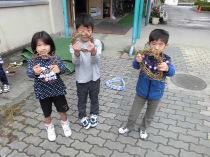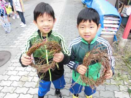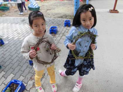 リースが完成に近づいています。みなん,とても上手に出来ています。