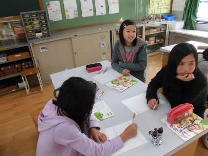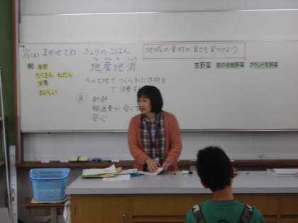家庭科の時間に「まかせてねきょうのごはん地産地消」を学習しています。今日は,地域の食材の良さについて学習していました。