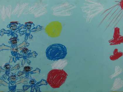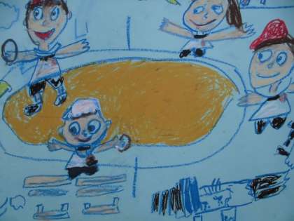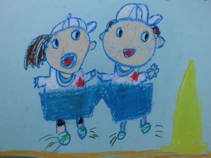 運動会の思い出を絵に表現しました。