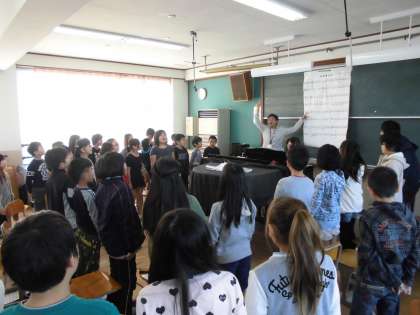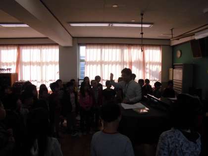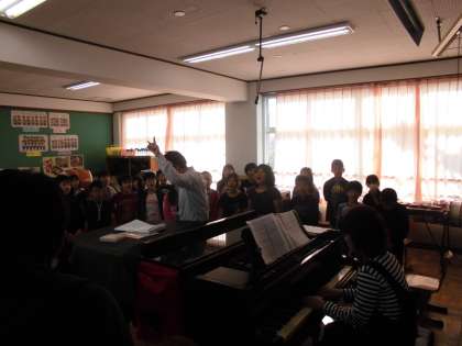 音楽の時間に「もみじ」を学習しています。今日は,「もみじ」をきれいな歌声で歌うことをめあてに合唱の練習をしていました。