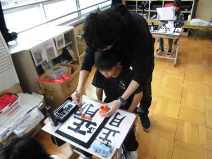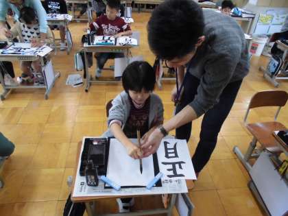 「正月」の字を丁寧に字を書いていました。
