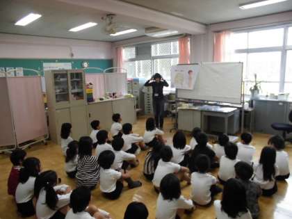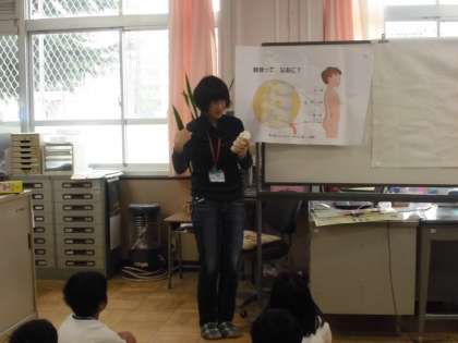 2年生は,身体計測が行われました。身体計測の前に養護教諭より「背骨」についての話がありました。日々の生活の中で,姿勢よく生活をすることが大事であると言っておられました。