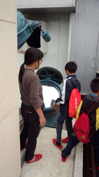 太陽館を見学しています。太陽館には,たくさんの鏡が設置されています。