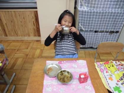 今日の給食の様子です。美味しそうに,給食をいただいています。