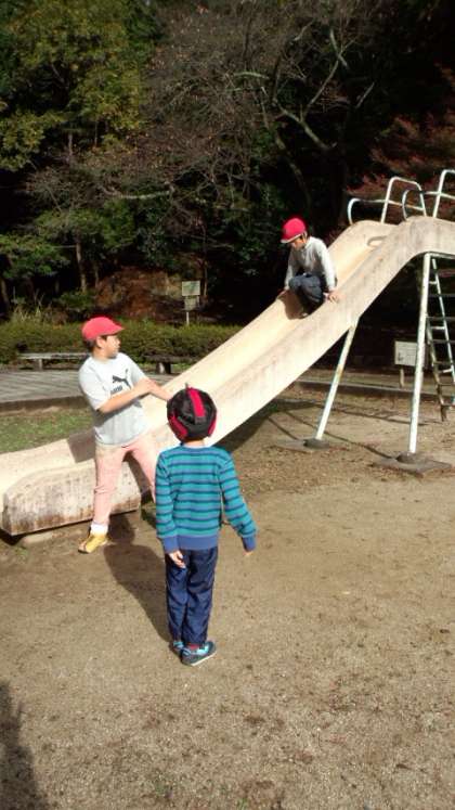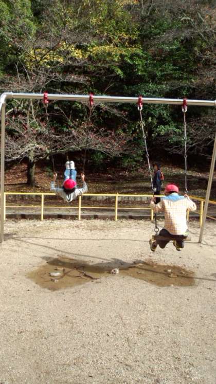 休憩時間に,疏水公園の遊具で遊んでいます。