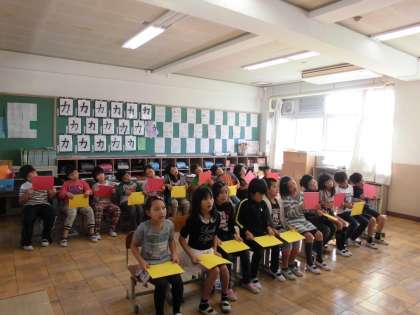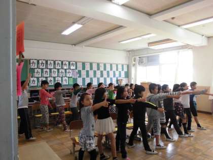 学習発表会に向けて,練習をしていました。今日は,音楽のリズムに合わせて上手にラインダンスを踊っていました。