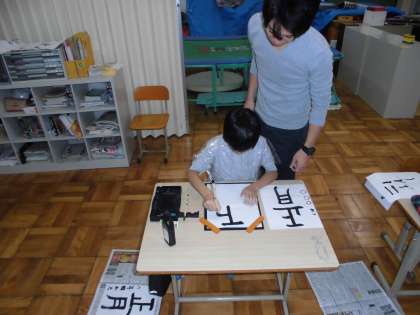 書写の時間に,「正月」の字を練習していました。