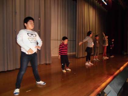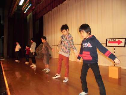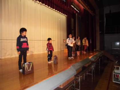 体育館の舞台で,「3くみぼうけんたい」を練習していました。当日が,楽しみですね。