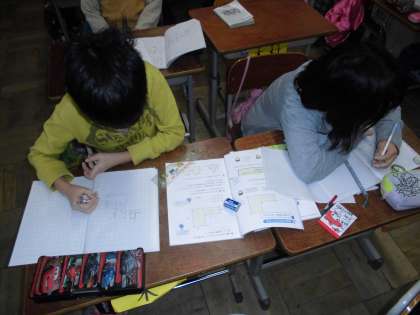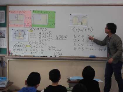 算数の時間に「面積」を学習しています。今日は,いろいろな形の面積の求め方を学習していました。