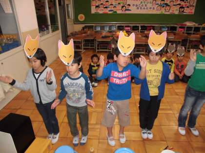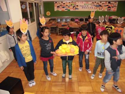 学習発表会のリハーサルに向けて,教室で演技の調整を行っていました。