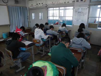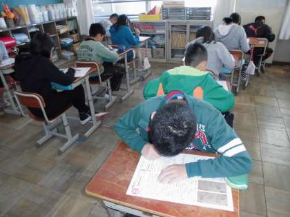 国語の時間に「鳥獣戯画」の学習をしています。今日は,「鳥獣戯画」のまとめのテストを行っていました。さて,結果は・・・