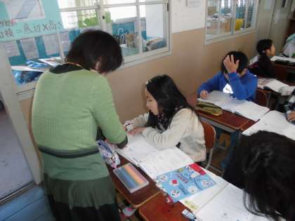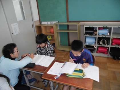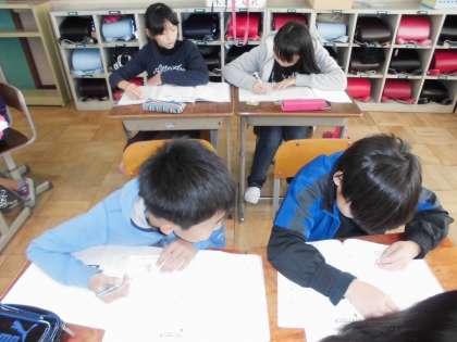 算数の時間に「面積」を学習しています。今日は,三角形,四角形の面積を求める練習問題を行っていました。