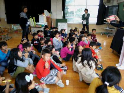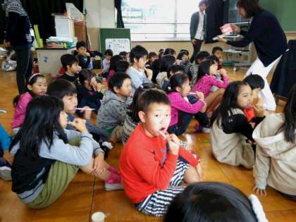 歯の磨き方を教えていただき後に,歯を一所懸命に磨いていました。