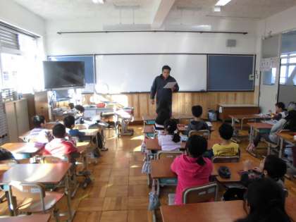 朝の会で今日の予定等を確認した後に,不審者から身を守るために山科警察の方から教えて頂いた「5ツの約束」を確認していました。「5ツの約束」は,生活だよ31に掲載されています。