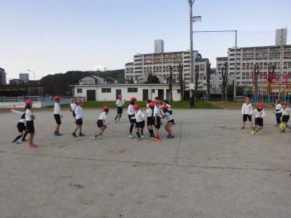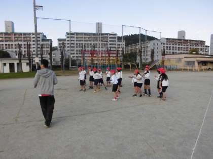 体育の時間にドッジボールをしていました。みんな楽しそうにゲームをしていました。