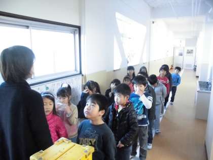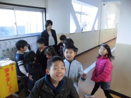 長寿化工事に伴って北校舎の教室配置が変わったので,1年生も北校舎を見学していました。