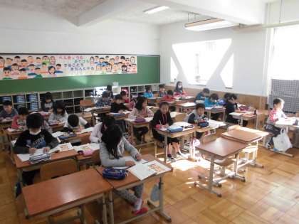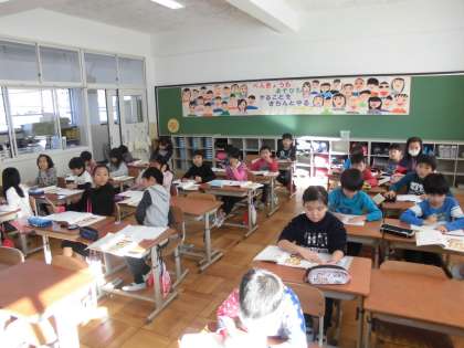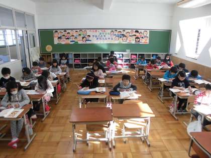 国語の時間に,「かたかなで書くことば」を学習しています。今日は,カタカナやひらがなを使って作文を書いていました。とても集中して書いていました。