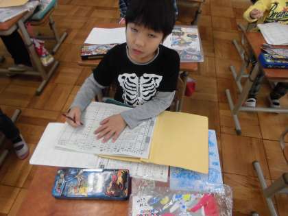 朝の会で学習予定表を確認しながら,今日の予定や宿題等の確認をしていました。