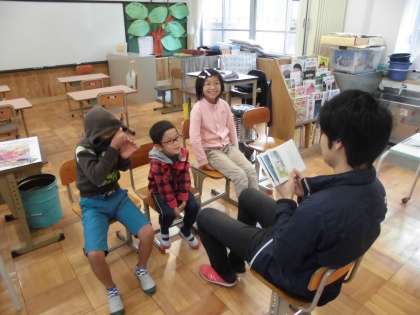 国語の時間に「読み聞かせ」等をしていました。