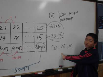 算数の時間に,「変わり方を調べて」学習をしています。今日は,「表にかいて変わり方のきまり」を学習していました。