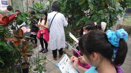 科学センターでは,珍しい蝶を飼育しています。子ども達は,蝶の観察をしています。