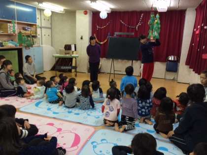 保育園の園児から,キャンドルサービスがありました。乳児組では,頑張って作った飾りの紹介をしていました!
