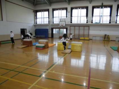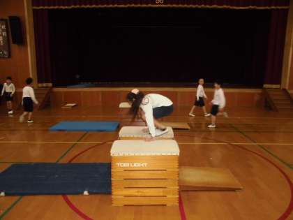 体育の時間に,「とび箱」を学習しています。今日は,自分挑戦したい技を練習していました。