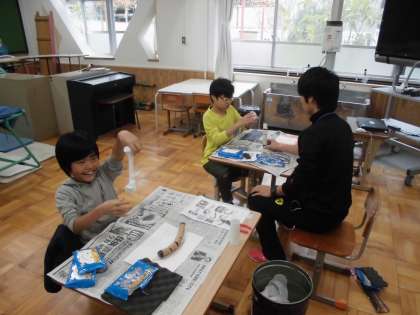 図画工作の時間に,粘土を使って「魚」を作っていました。