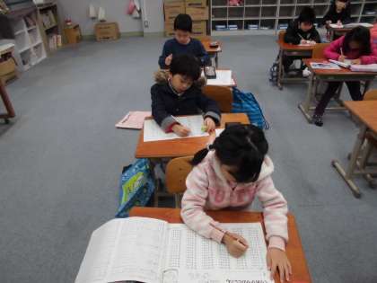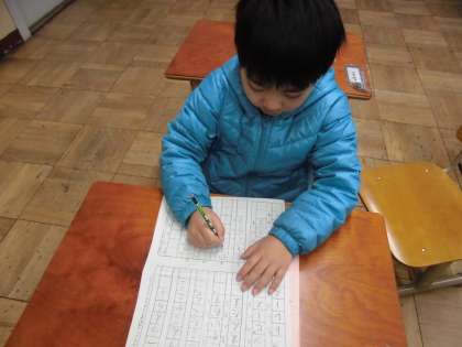 計算・漢字プリントを中心に集中して,学習を行っていました。