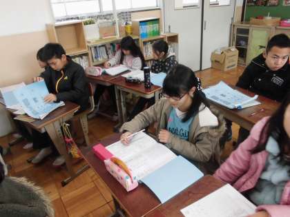 冬休み宿題の「丸付け」と「お直し」をしていました。