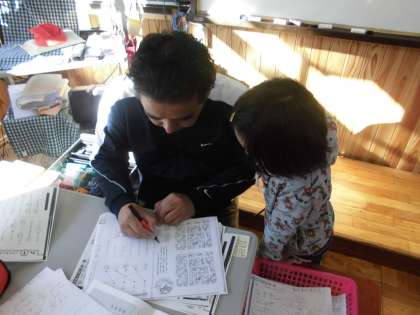 漢字・計算プリントを中心に,学習を進めていました。