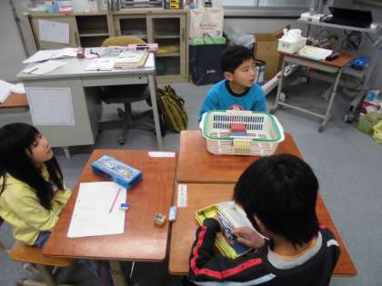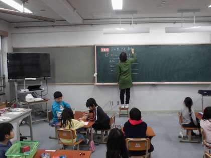 算数の時間に「ものと人のかず」を学習しています。今日は,練習問題をしていました。