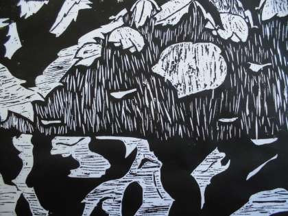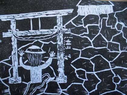 版画のテーマは,「修学自然教室」の思い出です。