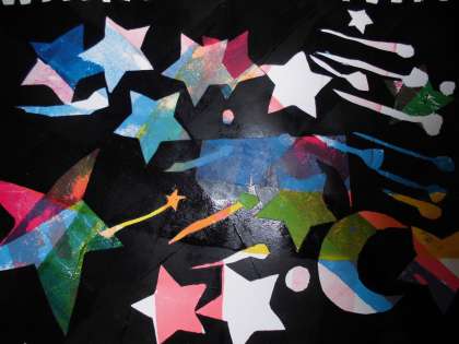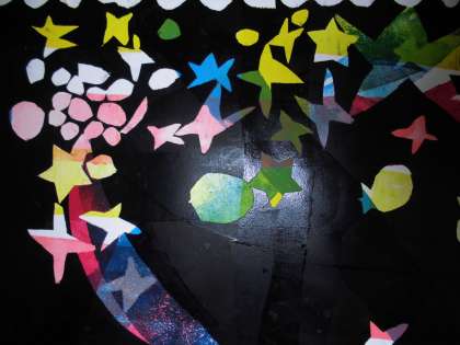 「版画」のテーマは,○○な世界です。子ども達の思い思いの世界を表現しました。