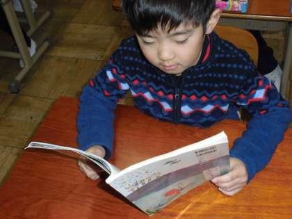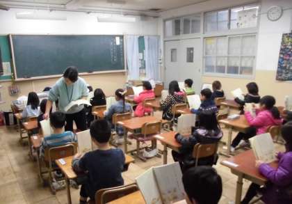 国語の時間に、「本をえらんでよもう」を学習しています。今日は,教材の音読練習をしていました。