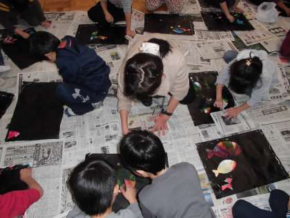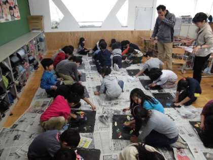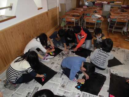 図画工作の時間に,「うつしてみると」を学習しています。今日は,版画を刷っていました。