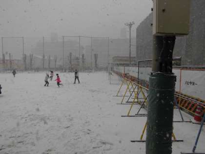 雪がつもり子ども達は,大喜びです。雪で楽しそうに遊んでいます。