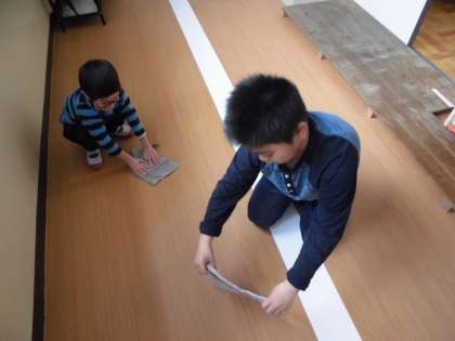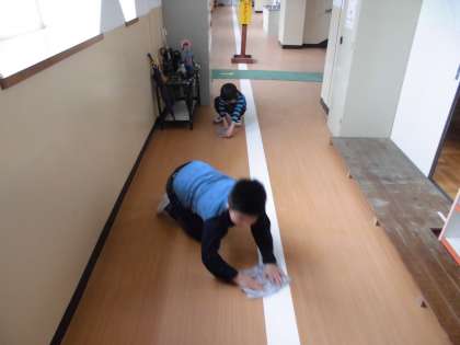 3くみの教室前の廊下を一生懸命に掃除していました。