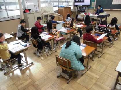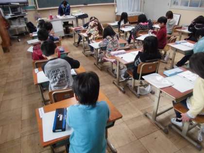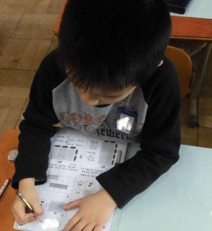 数の広場の時間に,算数のプリントをしていました。