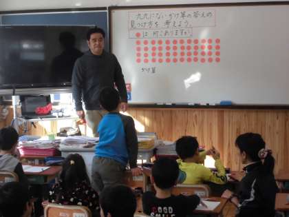 算数の時間に,「かけ算」を学習しています。今日は,九九にない答えの見つけ方を学習していました。
