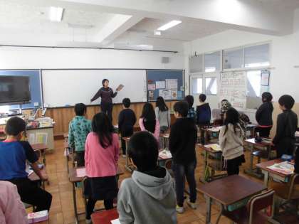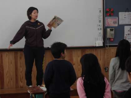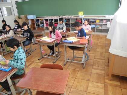 国語の時間に,「三年とうげ」を学習しています。国語の授業の前に,音読練習をしていました。