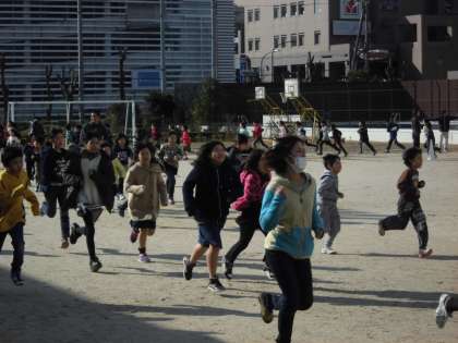 校内登山大会に向けて,一生懸命に体力づくりに励んでいます。