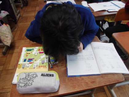 算数の時間に,「わり算」を学習しています。今日は,わり算の筆算を学習していました。